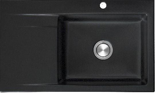 Prawa komora Zlewozmywak ceramiczny Wymiary 860×510 Wymiar komory 495 x 390 głębokość komory 205 mm kolor czarny bazalt ceramika