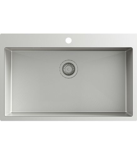 Wymiary zlewu montowanego na blacie : 790×505 mm Wymiary komory: 740×400 mm Głębokość komory: 200 mm Materiał: stal nierdzewna AISI304 Dostarczany z sitkiem w tym samym kolorze