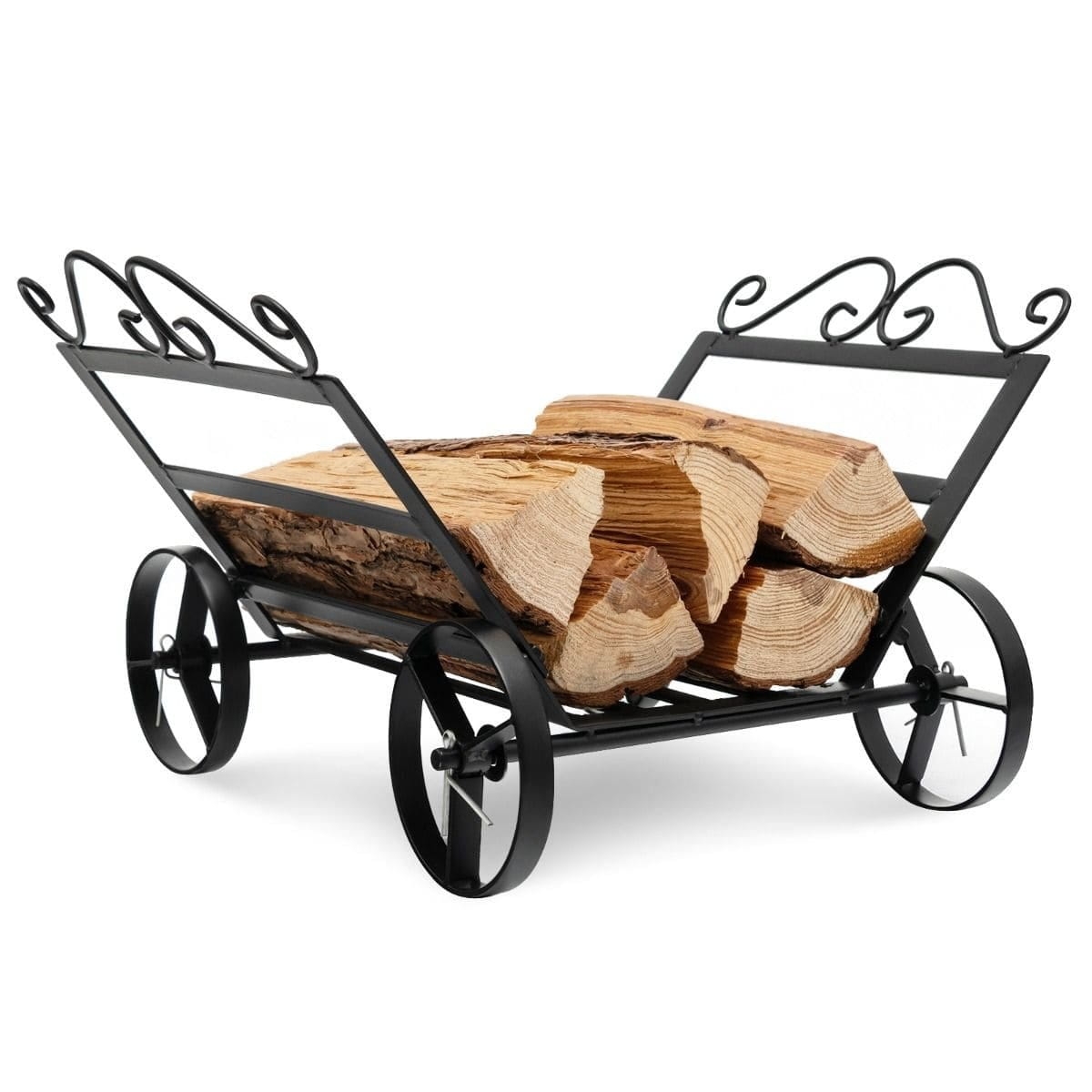 Wózek do składowania polan do paleniska Składując zgrabnie drewno przy kominku sprawiasz, że palenie w kominku czy palenisku jest wygodne a Twoja przestrzeń zyskuje porządek i estetyczny aspekt który kojarzy się z komfortem. Solidna stalowa konstrukcja sprawia, że regał na drewno jest wytrzymały a jego powierzchnia jest zabezpieczona przed rdzą dzięki malowaniu proszkowemu. 4 kółka na spodzie oszczędzają wiele wysiłku przy przemieszczaniu drewna. Kratowana podstawa na wysokości 6,5 cm od ziemi zapewnia dobrą cyrkulację powietrza i chroni drewno opałowe przed wilgocią. Ponadto uchwyt na drewno kominkowe będzie zawsze przyciągał wzrok dzięki pięknym elementom ozdobnym. Ten uchwyt na drewno opałowe z kółkami będzie idealnym dodatkiem do Twojego kominka. Trwałość: Wózek – stojak zbudowany jest ze wzmocnioną stalową ramą, dzięki czemu jest bardzo stabilny i odporny na odkształcenia. Można na nim załadować do 50 kg. Ponadto stalowa rama z powierzchnią pokrytą specjalną warstwą zapobiegającą rdzewieniu oferuje wytrzymałość nawet po dłuższym użytkowaniu na zewnątrz. Funkcjonalne kółka: Ten stojak do drewna posiada ma 4 praktyczne kółka. Dlatego można go przenosić bez wysiłku i bez podnoszenia ułatwiając sobie tym samym zadania związane ze zbieraniem i układaniem opału. Dodatkowo konstrukcja kółek podnosi jednocześnie podstawę, sprzyjając cyrkulacji powietrza i utrzymując drewno w suchości przez cały czas. Miejsce na drewno: Pomimo kompaktowych rozmiarów, dekoracyjny stojak na drewno w pełni wykorzystuje ograniczoną przestrzeń i oferuje wystarczającą ilość miejsca do przechowywania polan, pozwalając skutecznie przechowywać drewno. Ponadto stalowa podstawa zapewnia solidne wsparcie, a jej żebrowa konstrukcja zapewnia dobry przepływ powietrza. Zastosowanie wewnętrzne i zewnętrzne: Uchwyt na drewno opałowe ma elegancki wygląd z atrakcyjnymi motywami po obu stronach. Ten odporny na warunki atmosferyczne i dobrze wyglądający wózek na drewno kominkowe jest idealny zarówno do użytku wewnętrznego, jak i zewnętrznego. Łatwy w montażu i czyszczeniu: Wyposażony we wszystkie niezbędne akcesoria i jasne instrukcje, ten regał nadaje się do wnętrz i na zewnątrz, a dzięki prostej konstrukcji jest łatwy w montażu. Bez zbytniego czasu i wysiłku! Co więcej, ponieważ powierzchnia jest gładka i wodoodporna, możesz wyczyścić uchwyt na drewno opałowe po prostu za pomocą miękkiej szmatki. Pakiet zawiera 1 x wózek na drewno opałowe 1 x instrukcja