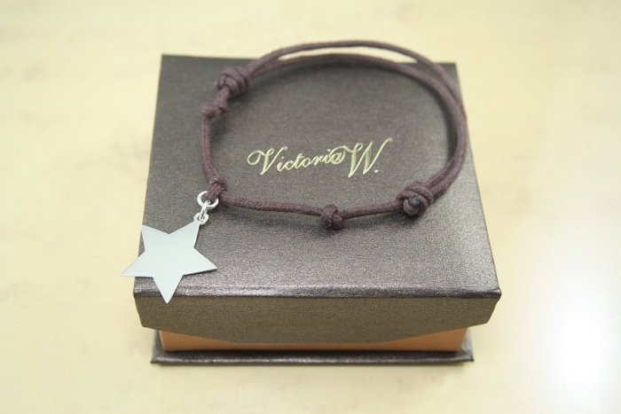 Originalna bransoletka marki „VictoriaW.” Gwiazdka w firmowym pudełku upominkowym.Przy kupnie za darmo wykonamy grawer jednostronny tekstu do 20 znaków lub prostej grafiki.Bransoletka wykonana ze sznurka jubilerskiego z jednym elementem srebrnym.Materiał: Srebro próby 0,925,Sznurek jubilerskiGrubość zawieszki:0,7-0,9 mmWymiary:w zależności od wzoru 17-25 na 17-25 mmKolory sznurka do wyboru:Opakowanie: Oryginalne pudełko prezentowe producenta zawieszek, marki: „VictoriaW.”Przykłady graweru:Za dopłatą +20zł wewnątrz pudełka doczepimy mosiężną blaszkę (kolor srebrny lub złoty w zależności od dostawy) i wykonamy Twój grawer Zdjęcia, tekstu, grafiki, loga. Opcja dostępna w naszej ofercieIdealny i modny prezent dla każdej kobiety niezależnie od wieku. Wspaniały prezent na Imieniny, Urodziny, Rocznicę, Walnetynki, Dzień Kobiet, Mikołaja, oraz pod choinkę na Gwiazdkę Świąt Bożego Narodzenia….