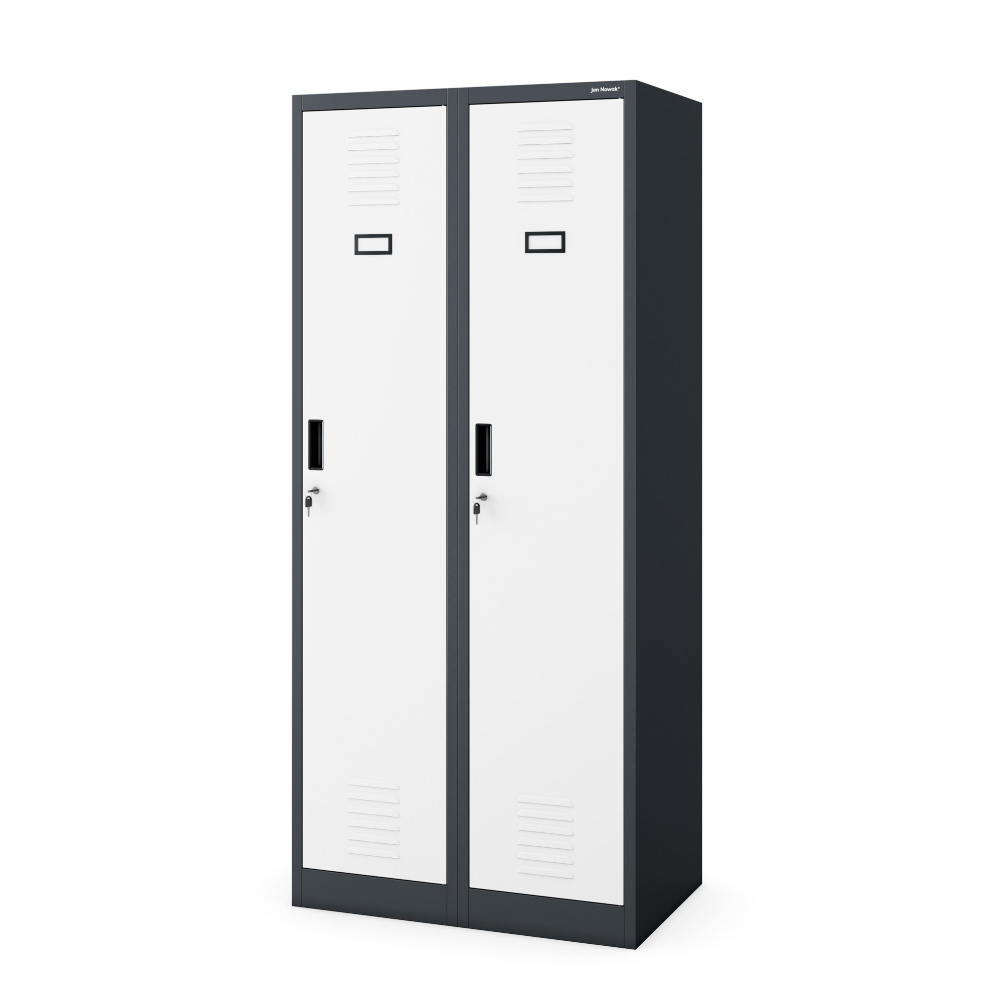 Antracytowo-biała szafa socjalna JAN NOWAK model KACPER – metalowa szafa pracownicza na odzież, na dokumenty, do warsztatu, do biura, 80 cm