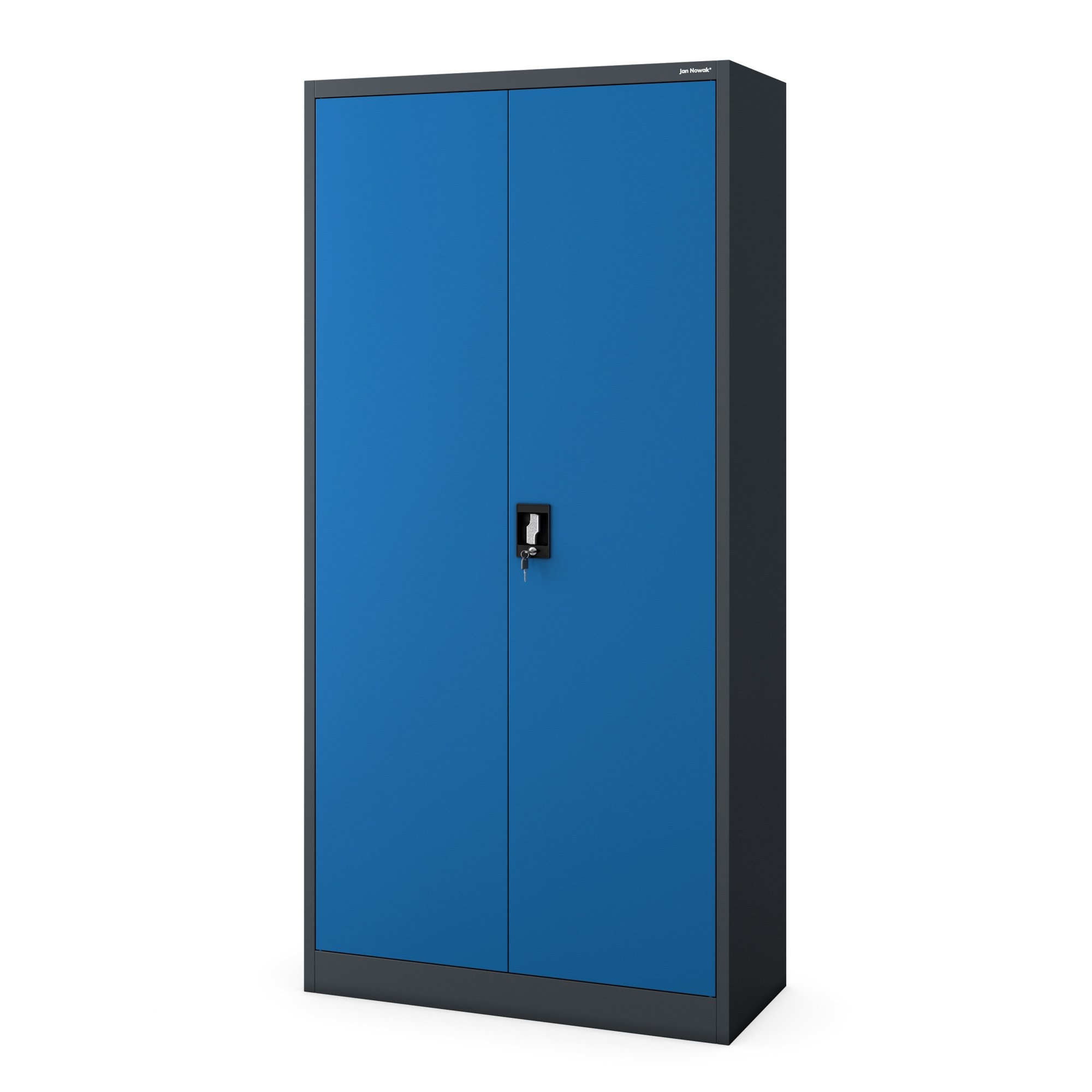 Metalowa szafa gospodarcza DAWID idealnie sprawdza się w miejscach, w których dobra organizacja jest na wagę złota. Kompaktowe rozmiary dwudrzwiowej szafy, a jednocześnie duża pojemność sprawiają, że to niezastąpiony mebel w biurze, warsztacie, siłowni, gabinecie lekarskim, a nawet w domu. W środku szafy zmieszczą się ubrania, narzędzia, teczki z dokumentami, pudełka i inne akcesoria. Zamykana szafa w ciekawym połączeniu koloru antracytowego i niebieskiego skutecznie zagospodarowuje pomieszczenie i pomaga zachować porządek. Trwała szafa na długie lata