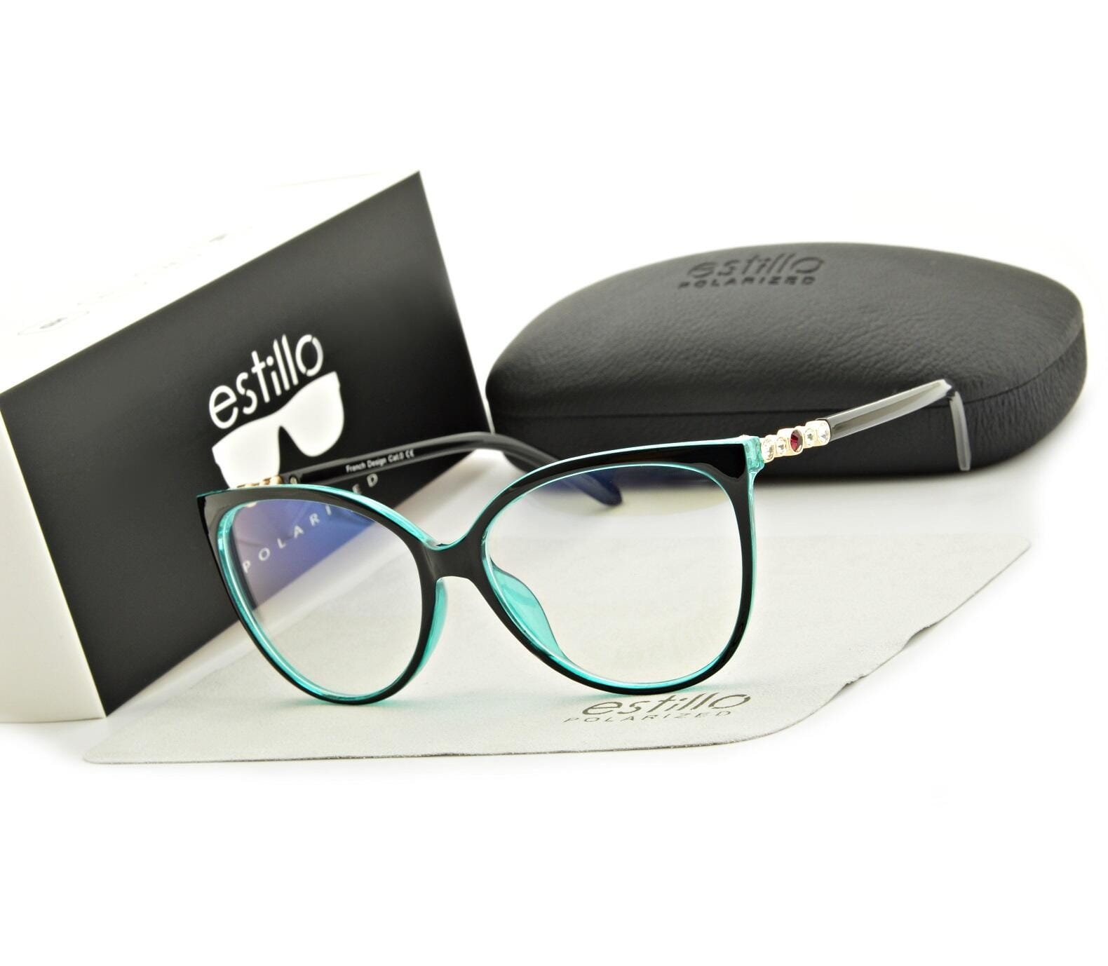 Kompletne okulary – model – EST-106K-10 marki Estillo ochronne zerówki do komputera, typu Kocie Oczy Oprawka czarno-turkusowa w połysku z cyrkoniami na zausznikach. W oprawkach istnieje możliwość wymiany soczewek na korekcyjne. Soczewki posiadają Filtr Światła Niebieskiego (blue light filter). Model idealny do pracy przy komputerze, tablecie oraz jako dopełnienie codziennych stylizacji. Co to jest niebieskie światło ? Światło niebieskie przenosi niemal największą energię z całego światła widzialnego. Długa ekspozycja na nie może powodować podrażnienia i zmęczenie oczu oraz obniżać koncentrację. Jeśli przez wiele godzin dziennie korzystasz z wyświetlaczy LCD (to one emitują najwięcej światła niebieskiego) możesz mieć również trudności z zasypianiem. Jak działają okulary do ekranów? Soczewki posiadają powłokę Blue Cut, odfiltrowują część światła niebieskiego, tak żeby ilość, która dociera do Twoich oczu była zbliżona do poziomu naturalnego. Dodatkowo soczewki zapewniają pełną ochronę przed promieniowaniem UVA i UVB. Dlaczego warto korzystać z okularów do urządzeń cyfrowych Okulary redukują nadmierną ilość niebieskiego światłą, poprawiają kontrast widzenia. Dodatkowo zmniejszają zmęczenie i podrażnienie wynikające z długiego patrzenia w ekrany LCD. Poprawiają koncentrację w trakcie dnia oraz komfort Twojego snu. Jeśli korzystasz często z komputera, telefonu czy tabletu, to produkt dla Ciebie SZCZEGÓŁY Producent estillo Rodzaj damskie Kształt kocie oczy Właściwości soczewek zerówki z filtrem światła niebieskiego (oprawki mają możliwość wymiany soczewek na korekcyjne) Filtr UV UV 400 Kategoria filtra kat. 0 Kolor oprawki czarno-turkusowe w połysku Kolor soczewki bezbarwna Dostępność w magazynie Czas realizacji 1-2 dni Materiał poliwęglan Wymiary szerokość między zausznikami (mierzona przy zawiasach) (cm): 13.7 max wysokość soczewki razem z oprawką (cm): 5.3 57 – szerokość soczewki podana w mm 11 – szerokość mostka podana w mm 142 – długość zausznika podana w mm W ZESTAWIE: ➤oryginalne okulary marki Estillo, ➤logowane twarde etui na zatrzask, ➤box firmowy, ➤ściereczka do czyszczenia, ➤metka firmowa Estillo, Okulary posiadają certyfikat jakości CE oraz odpowiadają Normie Europejskiej EN ISO 12312-1:2013 uznanej za Polską Normę PN-EN ISO 12312-1:2014-02. Filtr UV 400 – Soczewki blokują wszystkie trzy zakresy promieniowania ultrafioletowego UVA, UVB i UVC. Zapewnia pełną ochronę przed niepożądanymi skutkami ekspozycji na promieniowanie słoneczne. Okulary damskie z filtrem BLUE LIGHT do komputera korekcyjne EST-106K-10 ESTILLO Wyjątkowy produkt skierowany do płci pięknej. W czasach gdzie wiele firm przechodzi w tryb zdalny, spędzamy mnóstwo czasu przed komputerem. W takich okolicznościach powinniśmy zadbać o nasz wzrok. Okulary damskie z filtrem BLUE LIGHT do komputera — cechy charakterystyczne Okulary antyrefleksyjne do pracy przy komputerze. Produkt wyposażony jest w powłokę Blue Light, która ogranicza nadmiar niebieskiego światła, emitowanego przez wyświetlacze komputera, telewizora czy smartfona. Okulary wyposażone w filtr promieniowania UVA i UVB. Już dzisiaj zadbaj o swój wzrok! W oprawkach istnieje możliwość wymiany soczewek na korekcyjne. Okulary damskie ESTILLO — wygląd Mocnym atutem kolekcji ESTILLO będą oprawki, które wykonane są z trwałego materiału. Okulary damskie w stylu „kocie oczy” będą uniwersalne w aspekcie kształtu twarzy. Okulary ESTILLO skutecznie wysmuklają okrągłą buzię. Oprawka czarno-turkusowa w połysku z cyrkoniami na zausznikach doda elegancji każdej stylizacji!Dla kogo:damskieMateriał oprawki:tworzywo sztuczneKształt oprawki:Kocie oczyRodzaj oprawki:pełnaDominujący kolor oprawki:czarnyKolor soczewki:przezroczysty / bezbarwnySzerokość między zawiasami (mieści się w zakresie):pomiędzy 13,1cm – 14cmPolaryzacja:NIEAntyrefleks / Blue Light:TAKSoczewka lustrzana:NIEMożliwość wymiany szkieł:TAKNakładane na korekcyjne:NIEWymienne soczewki w zestawie:NIERozjaśniające:NIEFotochrom:NIE