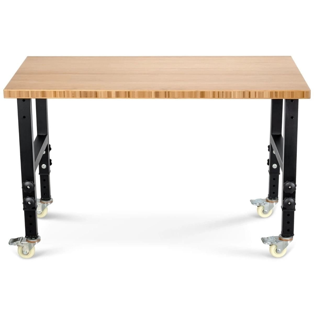 Regulowany stół warsztatowy z uniwersalnymi kółkami Nasz stół warsztatowy z 4 nogami o regulowanej wysokości, wykonany jest z bardzo trwałego, naturalnego bambusa o dużej gęstości. Nogi wykonane są natomiast z metalu dla zapewnienia stabilności. Dodatkowo szeroki blat oferuje dużo miejsca do pracy, przechowywanie narzędzi, przyrządów i wyposażenia. Dzięki dużej nośności nie musisz się martwić o uszkodzenie podczas typowych prac warsztatowych. Uniwersalne kółka ułatwiają przemieszczanie stołu a regulowane nogi dostosowują się do nierównych podłóg, dzięki czemu możesz realizować sprawnie swoje projekty. Ten stół warsztatowy jest idealny do garaży, warsztatów przemysłowych, warsztatów samochodowych, sklepów komercyjnych, oraz gospodarstw domowych. Duża przestrzeń robocza i solidna konstrukcja: Nasz stół warsztatowy jest przestronny – mierzy 120 x 60 cm i utrzymuje do 500 kg. Dużo miejsca oznacza wygodę pracy i możliwość położenia na nim nawet dużych narzędzi czy arkuszy materiału. Regulacja wysokości i metalowe nogi dbają o stabilność podczas pracy. Regulacja wysokości: 11 poziomów regulacji wysokości od 77 do 101 cm jest użyteczne aby dostosować swoje miejsce pracy do własnych preferencji i warunków w jakich się znajdziemy. Wystarczy przekręcić pokrętło, aż znajdziesz najwygodniejszą dla siebie wysokość. Uniwersalne kółka z blokadą bezpieczeństwa: Dzięki 4 uniwersalnym kółkom ta stacja robocza jest łatwa do przemieszczania i zwiększania tym samym komfortu własnej pracy. Na stole można postawić nawet ciężkie narzędzia i bez problemu je przemieścić. Hamulec bezpieczeństwa zapobiega nieoczekiwanym ruchom i zwiększa stabilność zatrzymując stół tam gdzie go potrzebujesz. Bambusowa powierzchnia i doskonałe wykonanie: Wykonany z naturalnego drewna bambusowego, regulowany stół warsztatowy został doskonałe wykończony warstwami lakieru, dzięki którym powierzchnia nie jest narażona na pęknięcia tak jak surowe drewno, a przy tym jest łatwa do czyszczenia i zwyczajnie przyjemna w dotyku. Nogi wykonane są z grubego metalu pokrytego powłoką antykorozyjną. Wielofunkcyjny stół warsztatowy: Dzięki prostej i trwałej konstrukcji, stacja robocza jest idealna do wykonywania różnych prac warsztatowych, napraw, malowania, wiercenia lub cięcia. Nasz bambusowy stół warsztatowy może być używany w garażach, warsztatach przemysłowych, warsztatach samochodowych, sklepach komercyjnych i gospodarstwach domowych. Utrzymanie i pielęgnacja bambusowego blatu stołu warsztatowego na kółkach Chcesz mieć pewność, że bambusowa powierzchnia Twojego stołu warsztatowego na kółkach zachowa swój naturalny wygląd i trwałość przez lata? Konieczne jest zatem, abyś regularnie przeprowadzał czyszczenie i praktykował odpowiednią pielęgnację. Używaj miękkiej szmatki i łagodnego detergentu do usuwania codziennych zabrudzeń. Unikaj stosowania agresywnych chemikaliów, które mogłyby uszkodzić lakierowaną powierzchnię. Dla dodatkowej ochrony co kilka miesięcy możesz zastosować specjalny olej do drewna bambusowego, który pomoże zachować jego elastyczność i naturalny połysk. Regularność w zakresie dbania o blat nie tylko wydłuży żywotność stolika warsztatowego na kółkach, ale sprawi również, że będzie on zawsze wyglądał estetycznie. Dlaczego warto wybrać nasz stolik warsztatowy na kółkach Nasz stolik warsztatowy na kółkach wyróżnia się na tle konkurencji dzięki połączeniu trwałości, funkcjonalności i estetyki. Wykonany z wysokiej jakości naturalnego bambusa i wytrzymałej stali, oferuje nie tylko wyjątkową wytrzymałość, ale także elegancki wygląd pasujący do każdego wnętrza. Unikalna cecha regulacji wysokości w 11 poziomach pozwala na idealne dopasowanie stołu do indywidualnych potrzeb użytkownika i rodzaju wykonywanych prac. Dodatkowo uniwersalne kółka do stołu warsztatowego z blokadą bezpieczeństwa zapewniają łatwość przemieszczania, przy jednoczesnym zachowaniu stabilności. Nasza dbałość o detale i zastosowanie materiałów najwyższej jakości sprawia, że prezentowany produkt jest nie tylko praktycznym, ale i trwałym rozwiązaniem dla każdego warsztatu.
