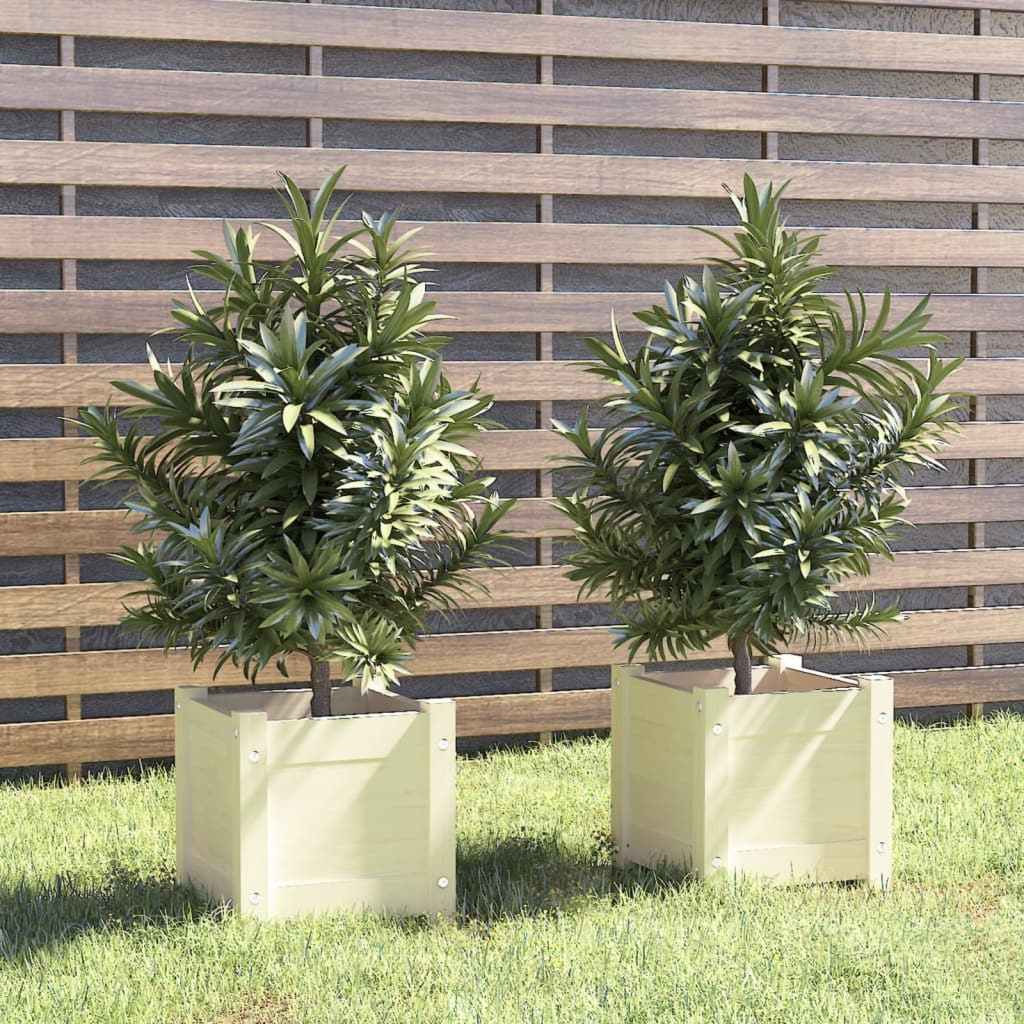 Donice wykonane są z solidnego drewna sosnowego, które jest nie tylko estetyczne, ale także trwałe. Białe wykończenie sprawia, że donice są odporne na działanie niekorzystnych warunków atmosferycznych, co zapewnia im dłuższą żywotność. Materiał został starannie przetworzony, aby uzyskać gładką powierzchnię, bez zbędnych wad, co wpływa na ich przyjemny wygląd i zachęca do ich użycia w każdym ogrodzie.
