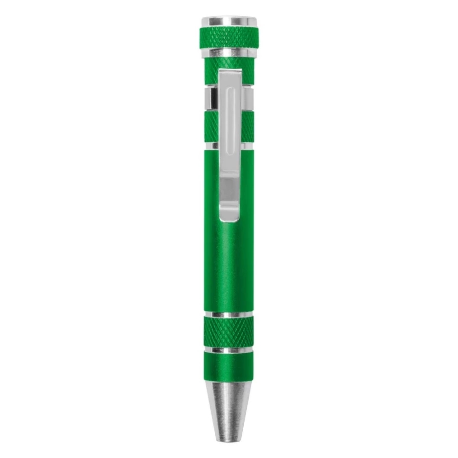 Śrubokręt Tate to mały, ale wielozadaniowy gadżet, który pokochają nie tylko zapaleni majsterkowicze. Ten sprytny pomocnik w formie eleganckiego „długopisu” skrywa aż osiem wymiennych końcówek – cztery płaskie i cztery krzyżakowe – dzięki czemu z łatwością poradzi sobie z drobnymi naprawami w domu, biurze czy warsztacie. Wykonany z trwałego aluminium, jest lekki, poręczny i wygląda naprawdę profesjonalnie. Doskonały jako praktyczny upominek reklamowy, który nie trafi do szuflady, tylko do… codziennego użytku. Z logo Twojej firmy umieszczonym na obudowie, staje się funkcjonalnym nośnikiem marki – idealnym na targi, akcje promocyjne czy prezent dla klientów.