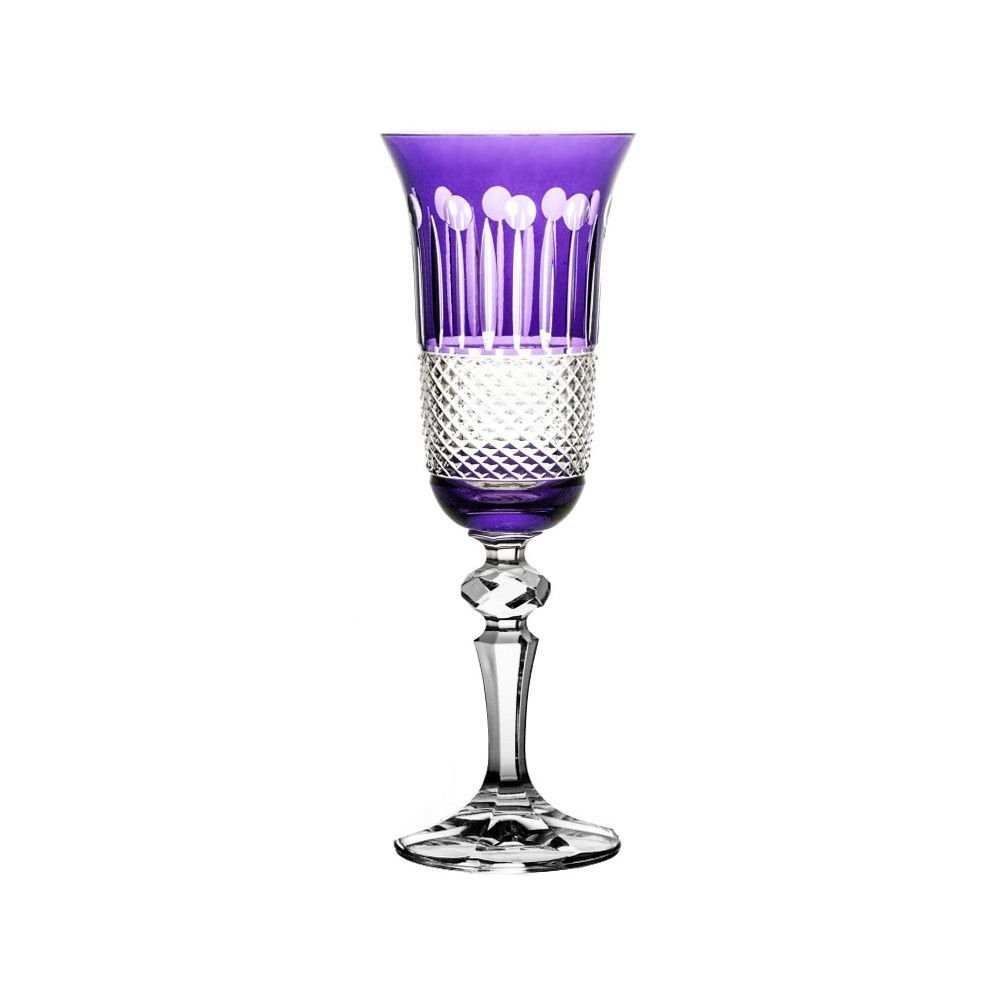 Zestaw 6 sztuk kieliszków do szampana lub prosecco wykonanych z wysokiej jakości szkła crystalite w kolorze fioletowym.