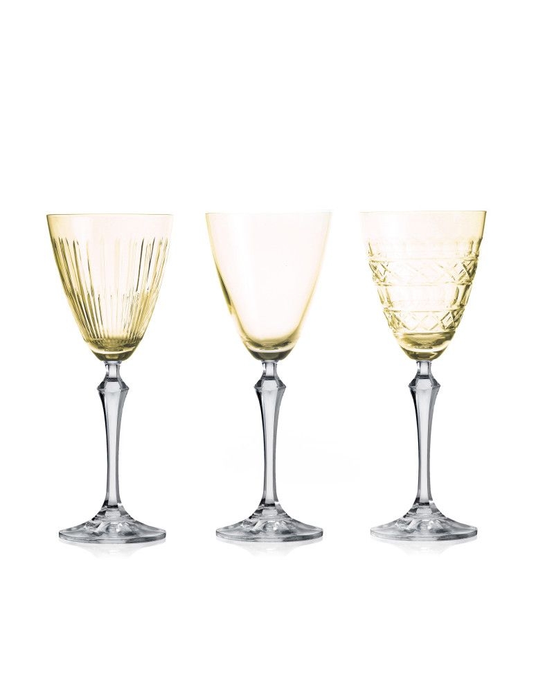 Zestaw 3 sztuk kieliszków do wina czerwonego, wody lub soku wykonanych z wysokiej jakości szkła crystalite w kolorze słomkowym.