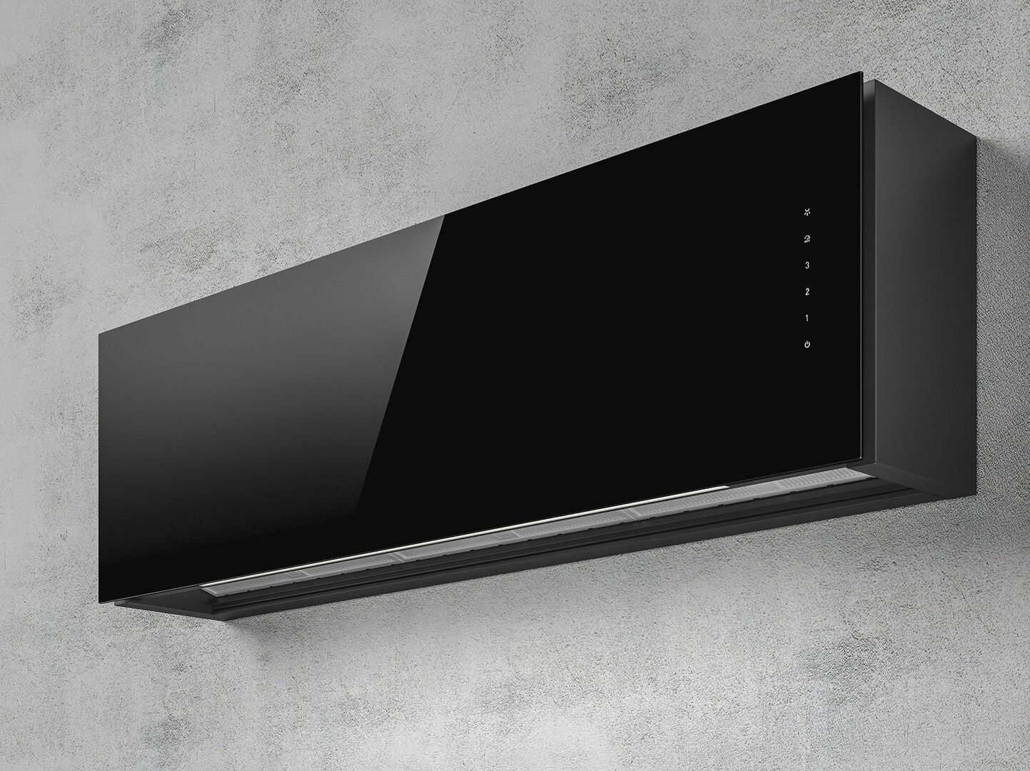 Pierwszy, całkowicie poziomy okap o niesamowitej wszechstronności instalacji, pozwalającej na regulację głębokości w zakresie od 21 cm do 36 cm.