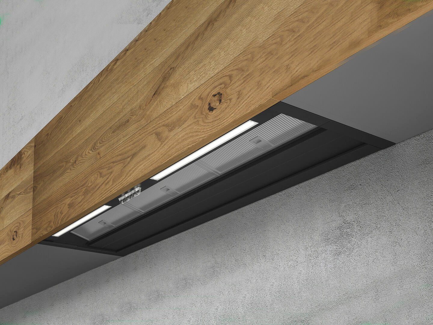 Pierwszy, całkowicie poziomy okap o niesamowitej wszechstronności instalacji, pozwalającej na regulację głębokości w zakresie od 21 cm do 36 cm.