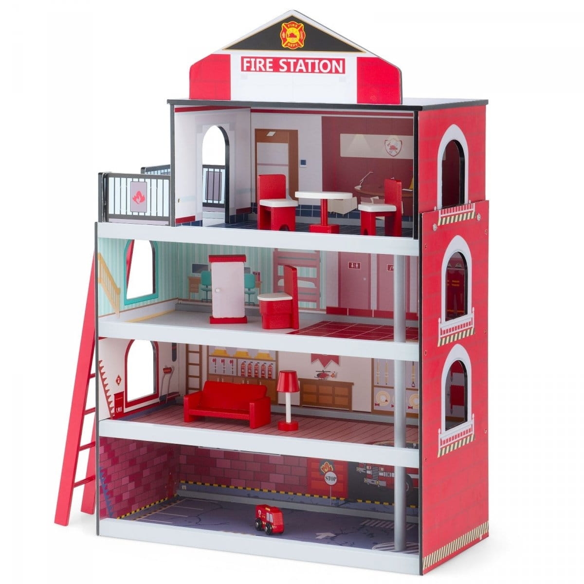 Drewniany domek – zabawkowa remiza strażacka z wyposażeniem