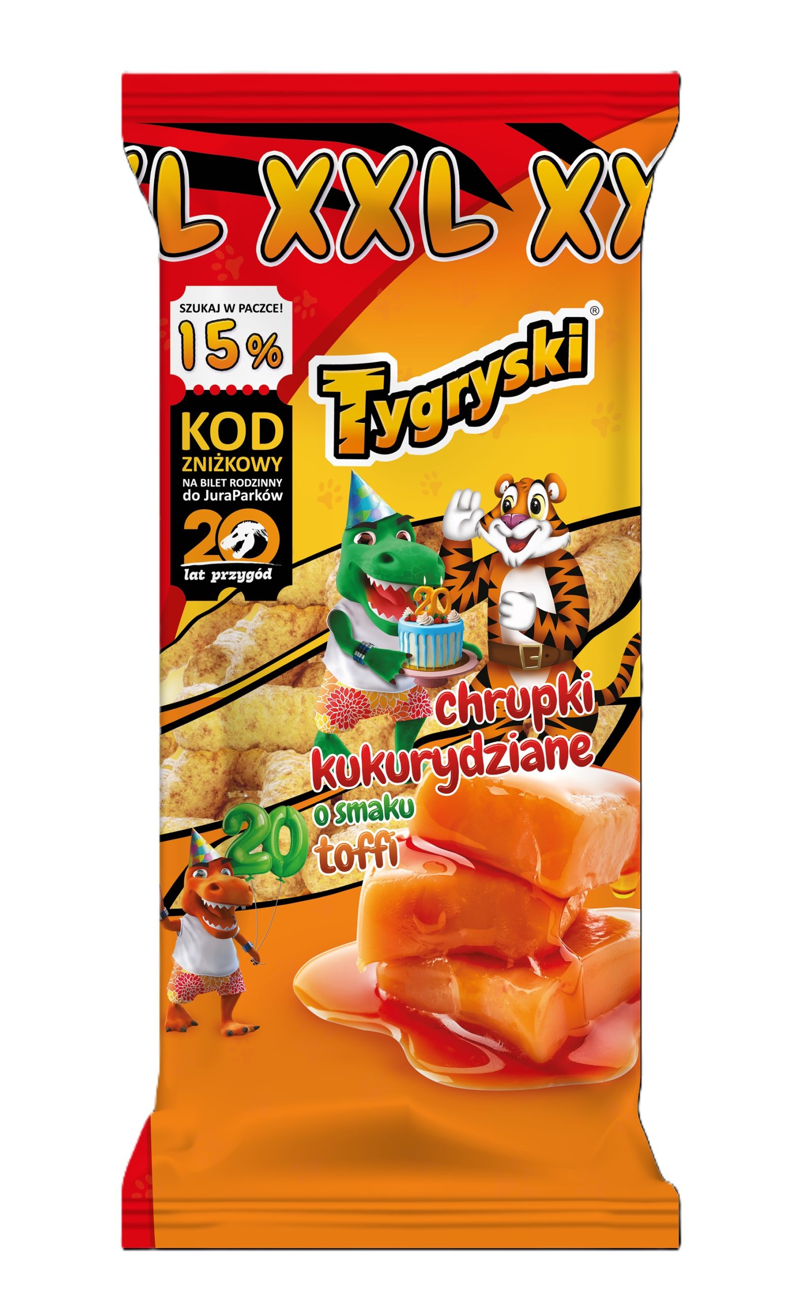 Marka Tygryski, będąca najchętniej kupowaną marką chrupek kukurydzianych*, wciąż nie zwalnia tempa. W poszukiwaniu jeszcze bardziej atrakcyjnych rozwiązań dla swoich Klientów, postawiła na cross marketing. Wśród podjętych przez producenta chrupek działań, jest multibrandingowa akcja prowadzona wraz z Grupą JuraPark, specjalnie dla sieci sklepów Lidl. Celem współpracy jest dostarczanie konsumentom okazji do spędzania czasu w rodzinnym gronie, a także podsunięcie im „czegoś do chrupania” – przecież wakacyjne przygody najlepiej przeżywać z najbliższymi, a to, że w trakcie zabaw kogoś najdzie ochota na przekąszenie czegoś, jest niemal pewne. Dlatego w sklepach Lidl Polska można znaleźć kukurydziane chrupki Tygryski, w których znajdują się kody rabatowe -15% na bilety do trzech JuraParków: w Bałtowie, Solcu Kujawskim i Krasiejowie.